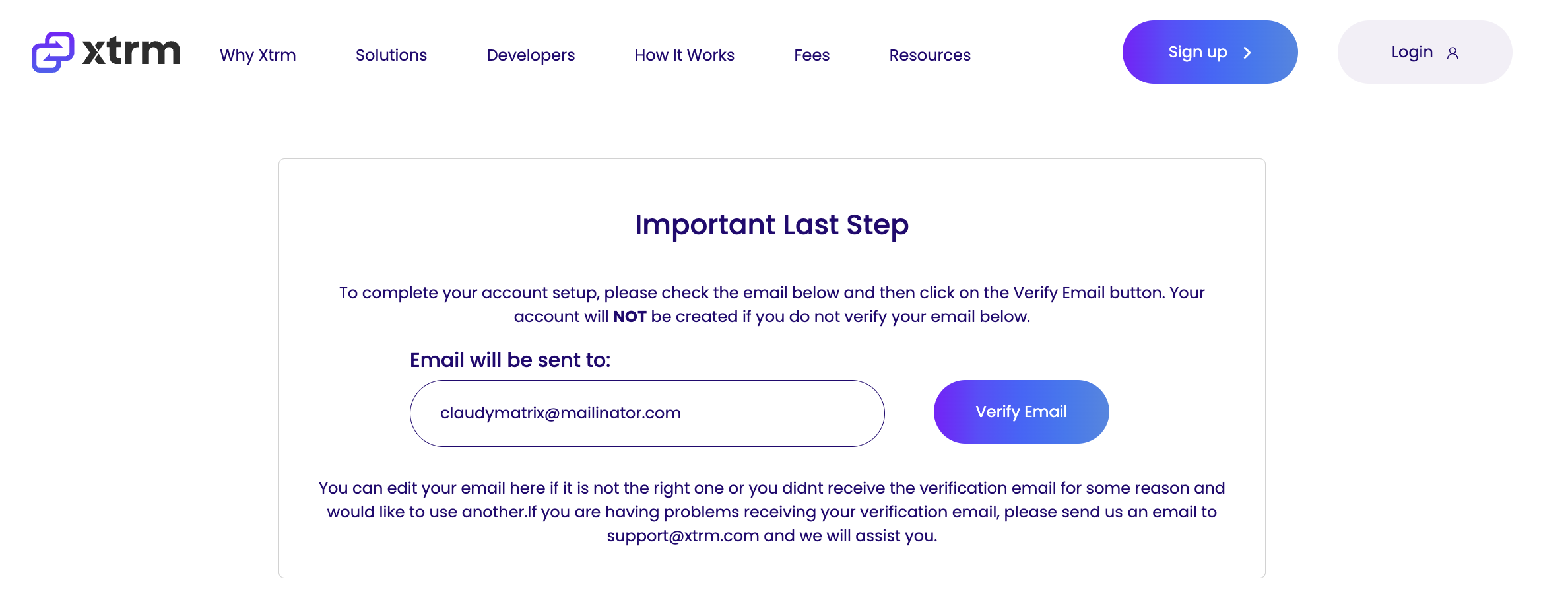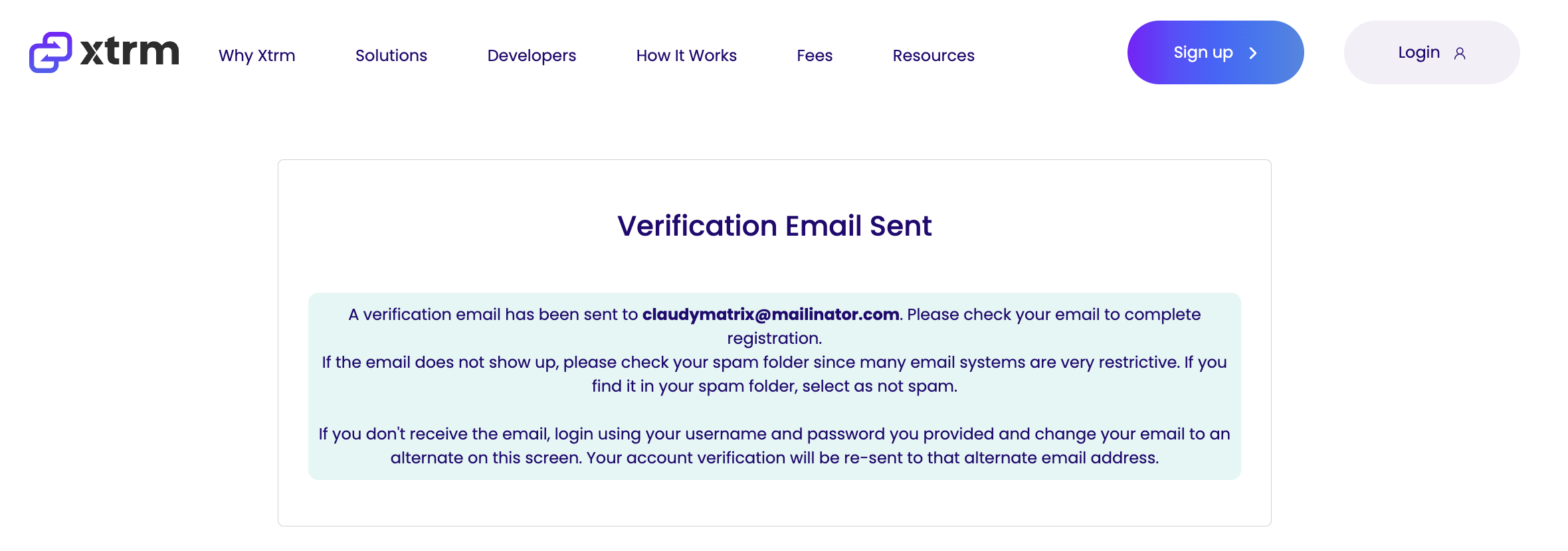5. Confirmation a verification email was sent. Note, these emails are released instantly