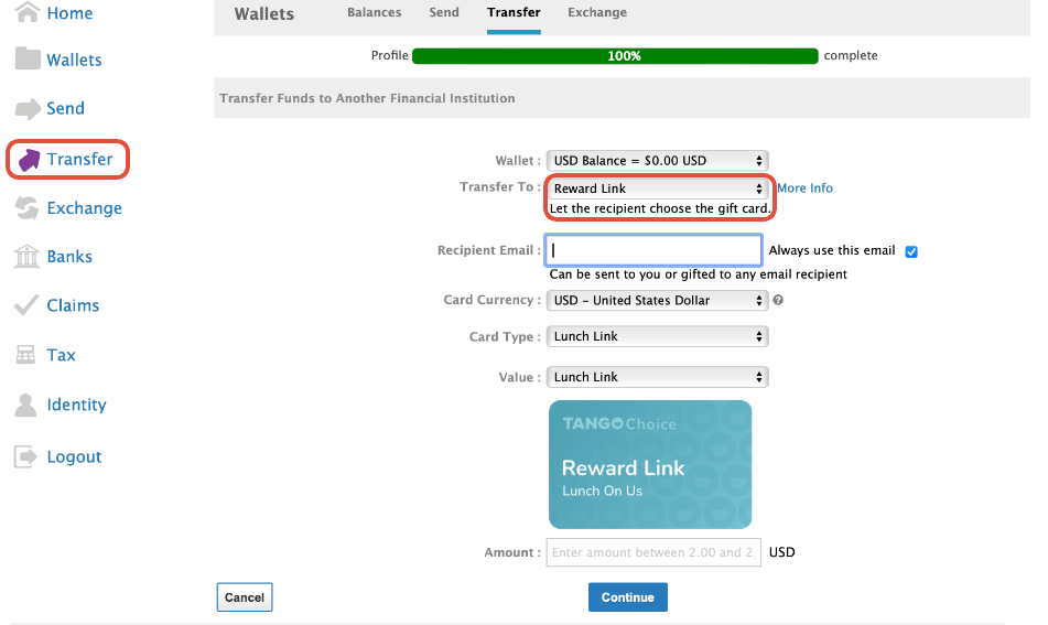 A reward link allows you to transfer funds to an open-ended digital gift card that can, in turn, be used to choose from over 200 different retail gift cards. This means you or the beneficiary is given the choice of gift card versus selecting one specific card.