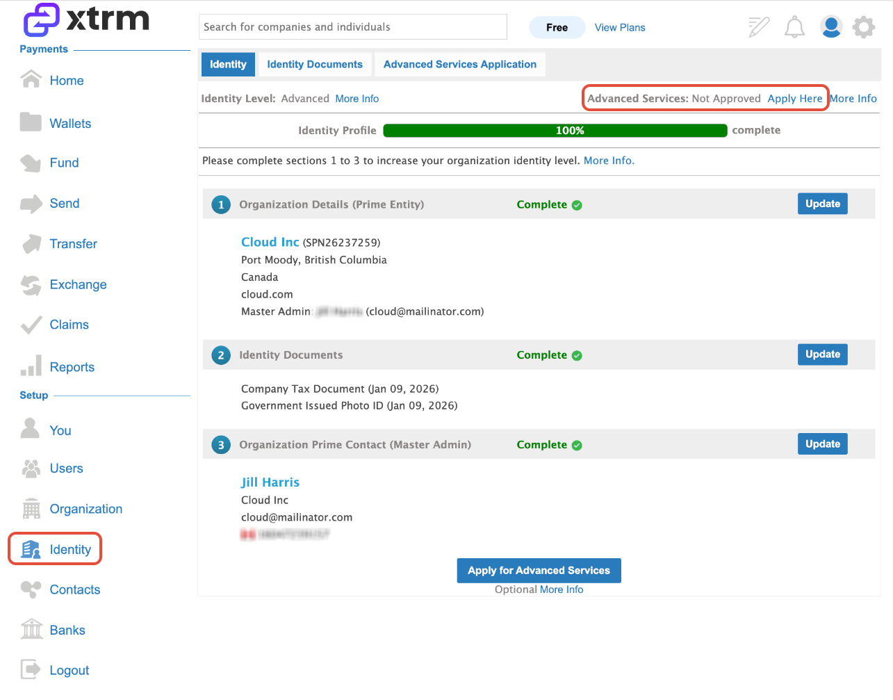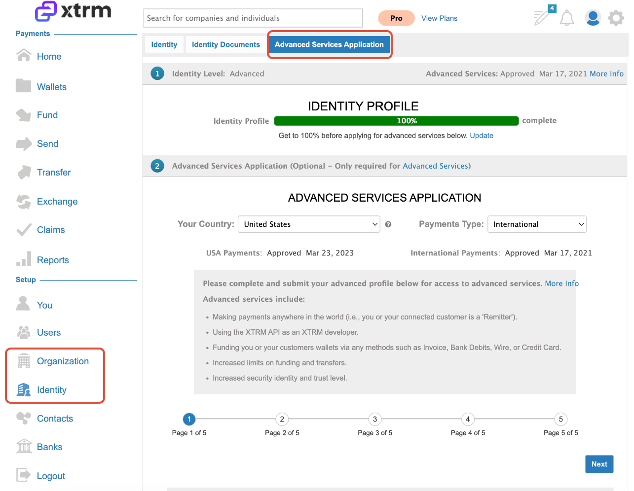 Xtrm Advanced Services is designed for companies (remitters) that want to make domestic or global payments. It is not required for receiving payments. Approval for Advanced Services is mandatory to fund wallets, send payments, and pay bills.