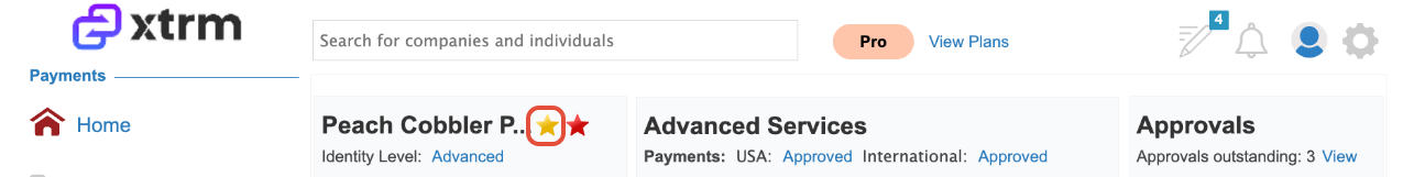 Managing companies that are connected to downstream partners and customers can view and complete the advanced profile on their behalf. They are able to see the Advanced Services status of their partners—whether approved or not. Approved companies will have a gold star next to their name.